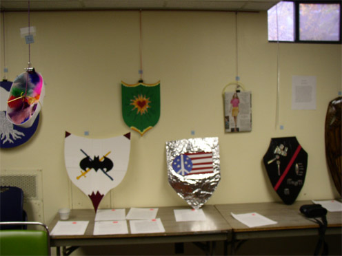 In the context of their fall term focus on Ritual and Ceremony, ROIAL students were asked to create two types of ceremonial artifacts - masks (left) and shields (right). For each mask and shield, the creator provided an explanation for the significance of the design elements employed. An impressive variety of themes and motifs were used in accomplishing the assignment. |